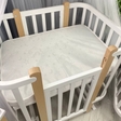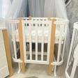 Матеріали:Ліжечко виготовлено з натурального дерева бука — міцного, екологічного та безпечного для дитиниРозміри:Маленьке ліжечко:Спальне місце: 60×84 смЗагальний розмір: 67×88 см